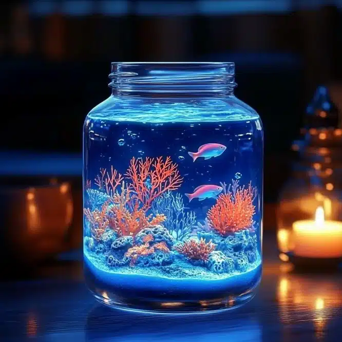 - Turn off the lights, and boom! You’ve got a glowing underwater world that looks absolutely magical.
