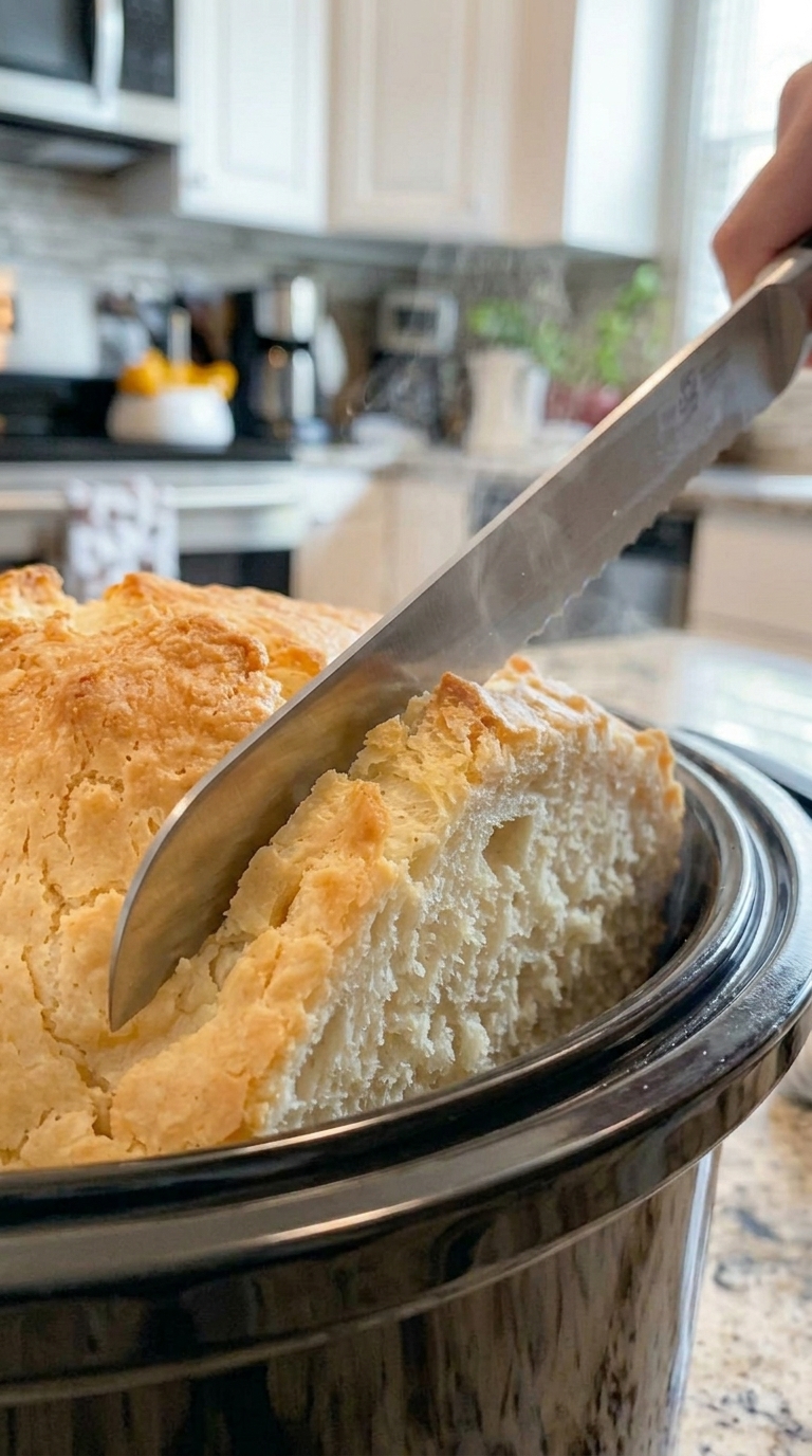Additionally, the slow cooker traps heat and moisture. This environment allows the bread to cook evenly while staying soft and moist throughout.