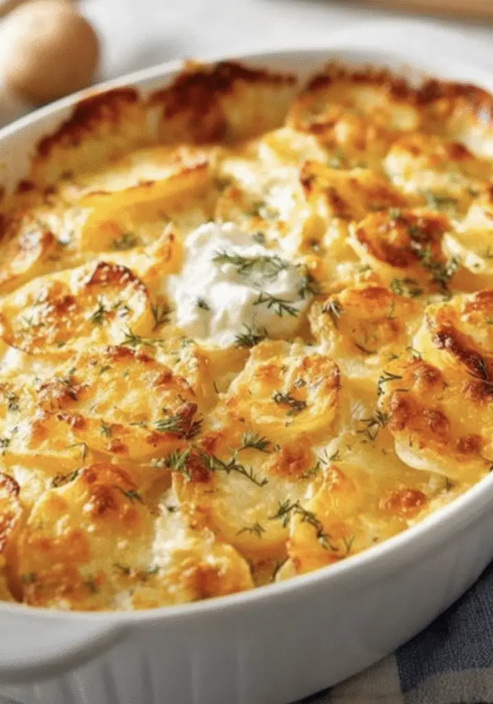 This is the holiday side you make when you want zero stress and maximum flavor. Frozen hash browns, sour cream, and a punchy ranch packet come together to create a creamy, velvety, savory potato bake with golden edges and a warm, herby aroma that fills the whole kitchen.