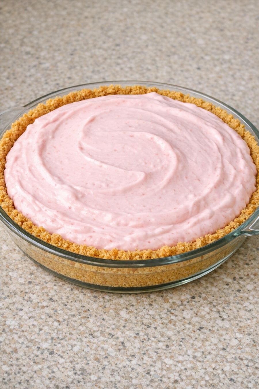 Pour the mixture into the graham cracker crust and smooth the top evenly.