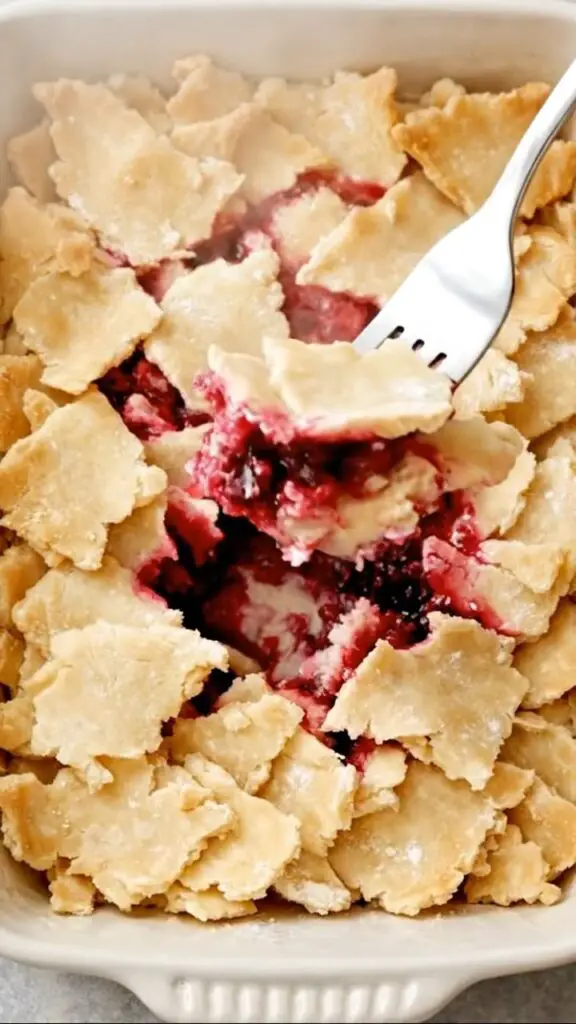 This reminds me of the kind of dessert that always appeared when unexpected guests showed up at my grandmother’s farmhouse. She never fussed with perfect pies when time was short. Instead, she would tear pastry into a dish, spoon over fruit, and let the oven work its magic. The smell alone always brought everyone straight to the kitchen, and somehow there was never a spoonful left by the end of the night.