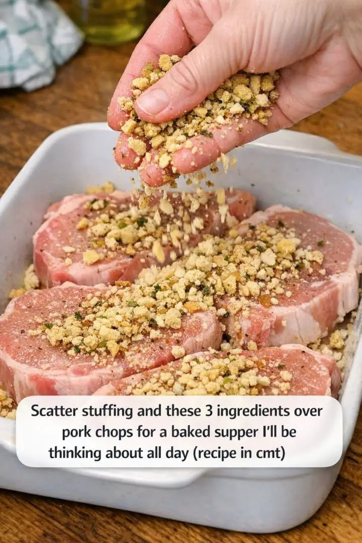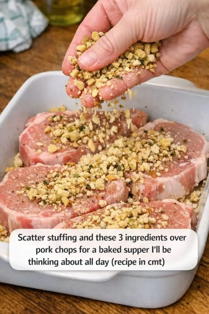 Baked Pork Chop Supper works because of its layers. As the pork chops cook, their juices soak into the stuffing below. This creates a moist, flavorful base that complements the tender meat perfectly.