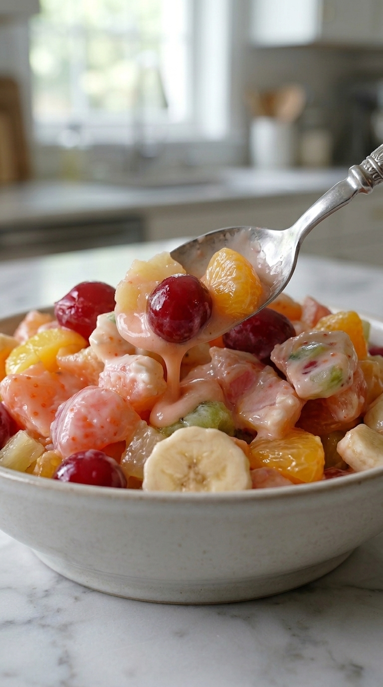 I first tried this fruit salad at a family reunion where it sat quietly among dozens of dishes. However, after one bite, everyone started asking who made it. The mix of sweet cherries and soft bananas created a creamy, almost dessert-like texture that stood out immediately. Since then, I’ve made it countless times, and it always gets the same reaction.