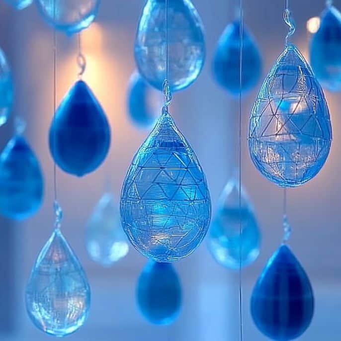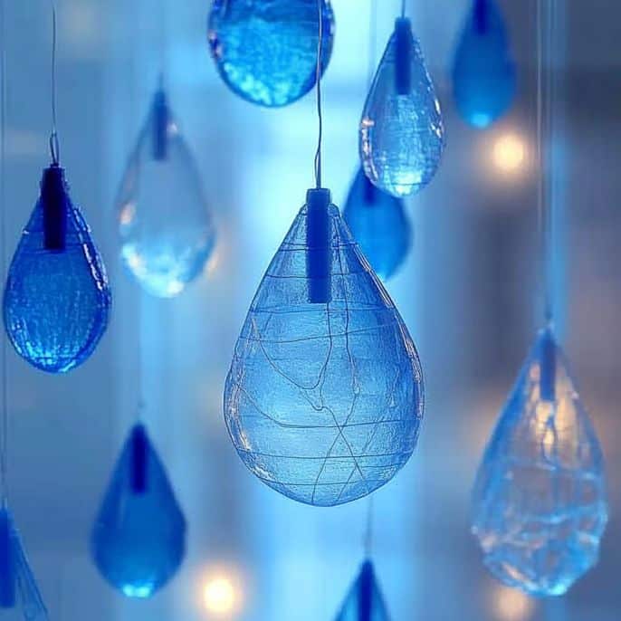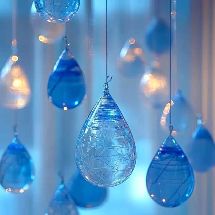 Hang your raindrops individually or in a vertical row. Watch how the light brings them to life!