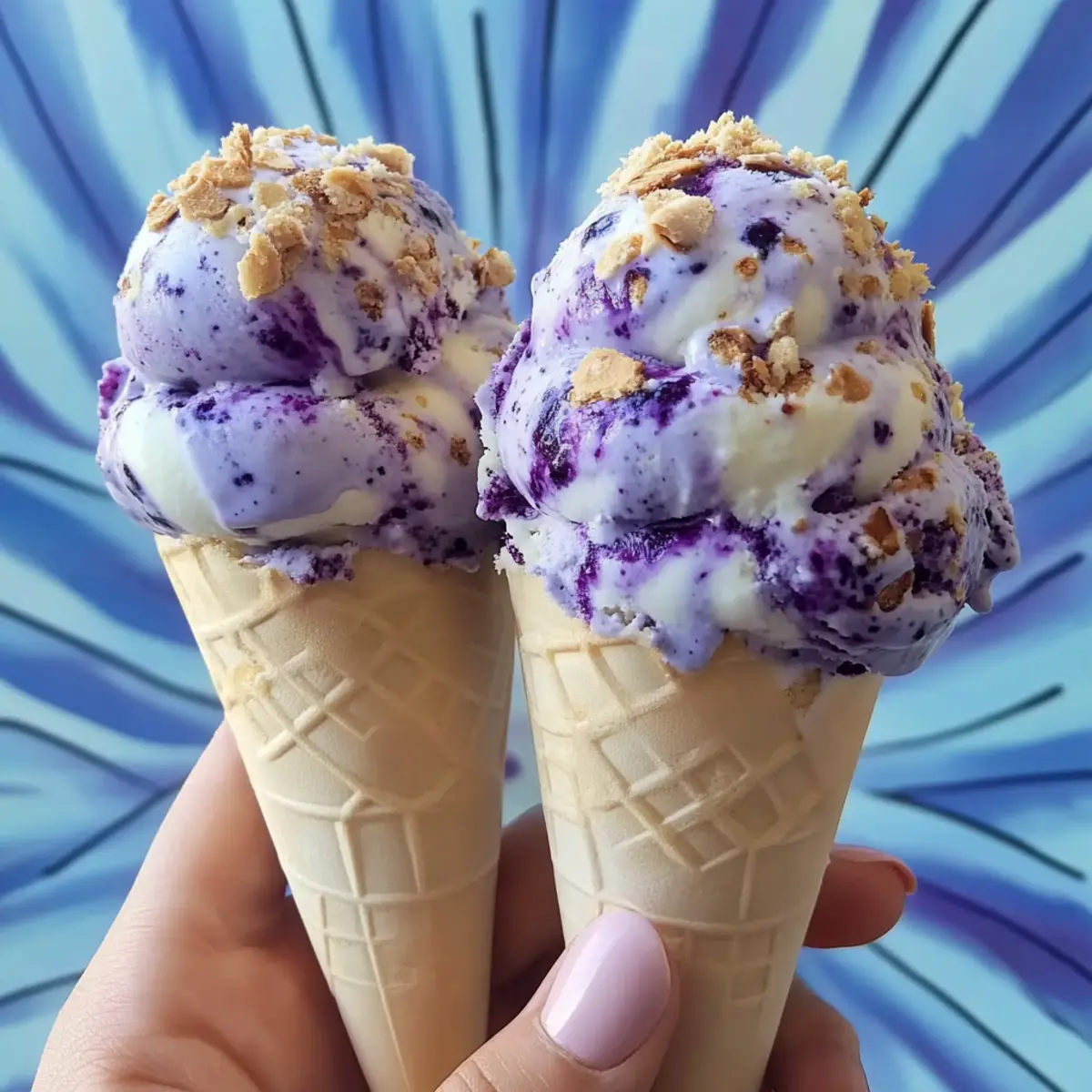- Assemble & Freeze: In a freezer-safe container, layer the churned ice cream, blueberry swirl, and graham cracker crumble. Swirl gently to combine and freeze for at least 4 hours until firm.
