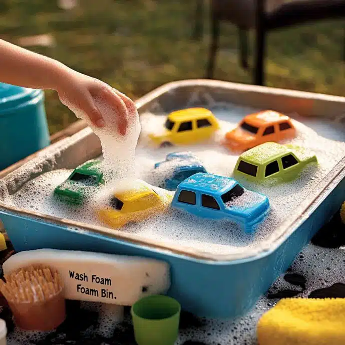 Car Wash Foam Bin – Soapy, Sensory Fun for Little Mechanics! 🚗✨