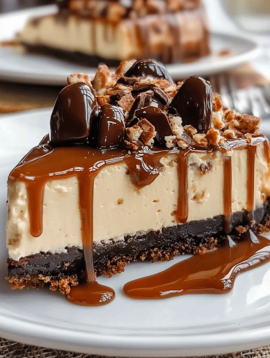 Remove the cheesecake from the springform pan and slice into generous pieces. Each bite will have the perfect combination of creamy cheesecake, gooey caramel, crunchy pecans, and rich chocolate—a truly indulgent dessert!