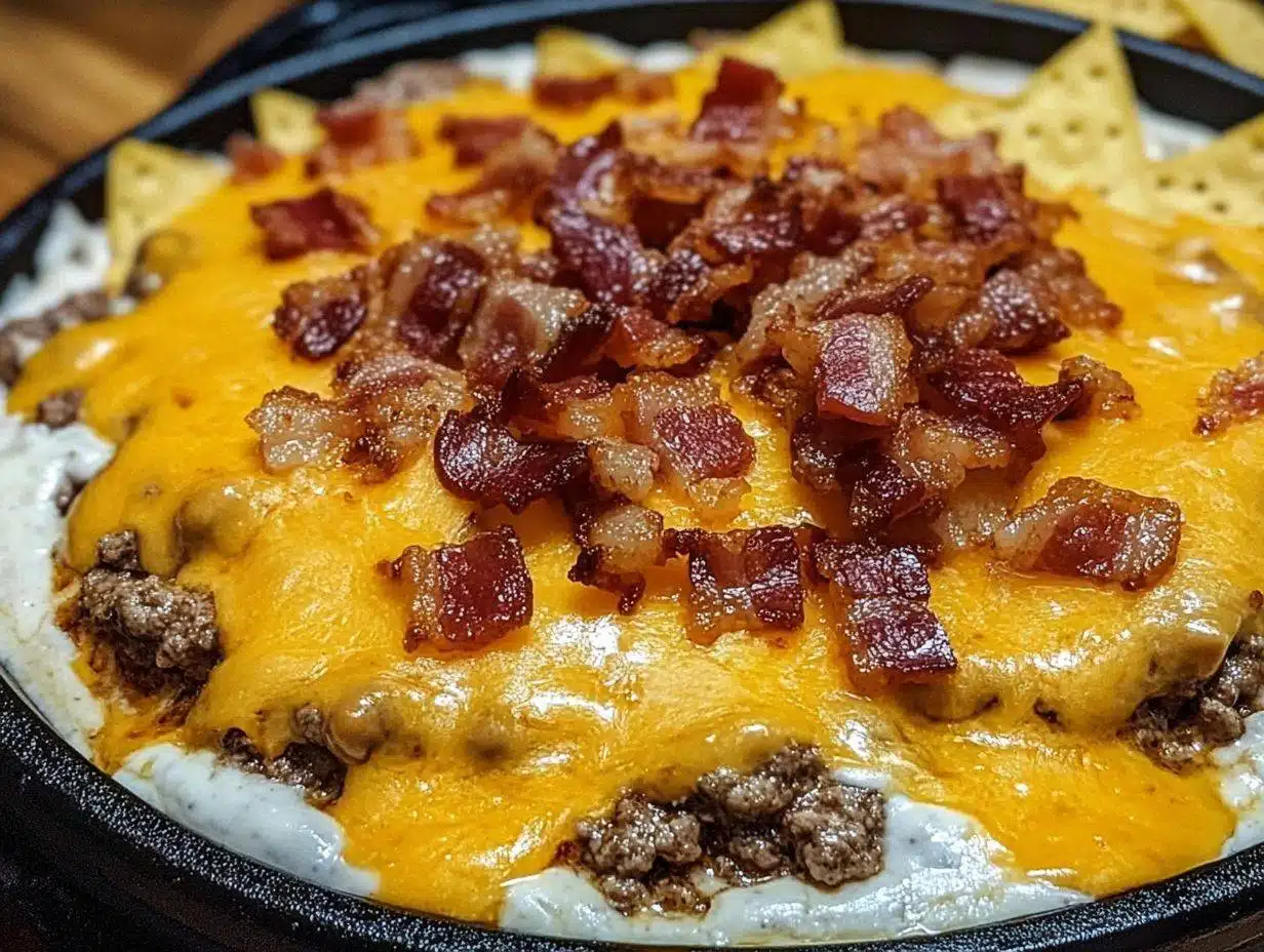 - Sizzling Bacon Cheeseburger Queso Dip
