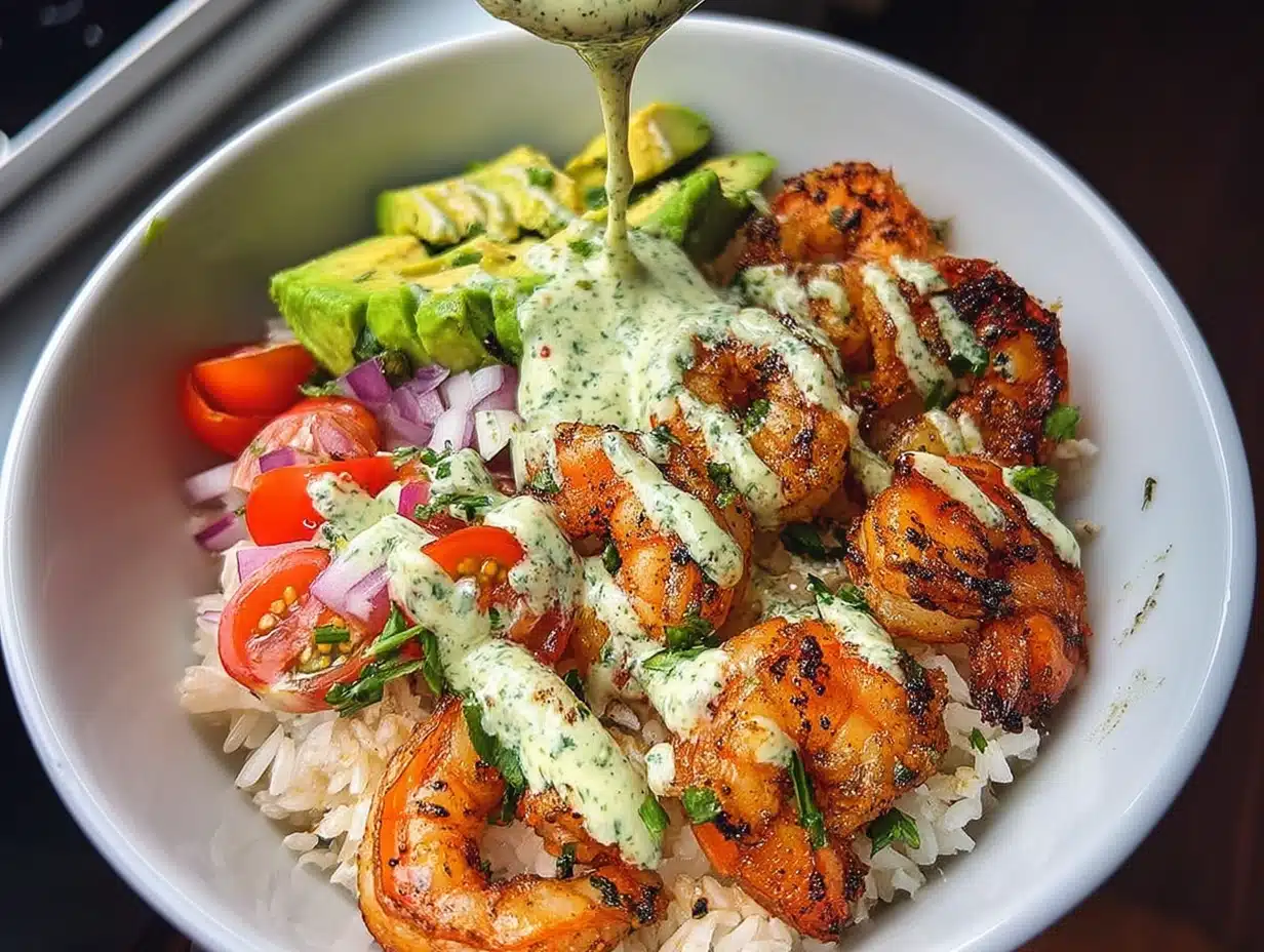 Zesty Shrimp & Avocado Rice Bowls With Cilantro Lime Sauce