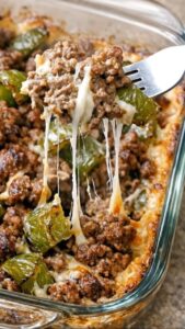 Meanwhile, the homemade cheese sauce creates a silky base. Instead of using canned soup, this recipe starts with a simple roux made from butter and flour. Then, you whisk in milk until smooth and thickened. Finally, shredded cheddar and grated Parmesan melt into the sauce, creating depth and bold flavor.