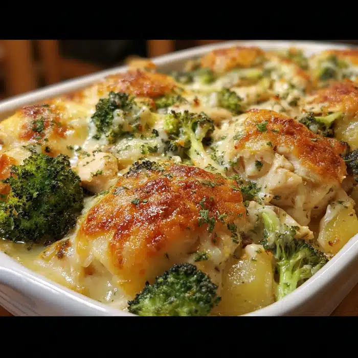 This casserole combines tender potatoes, juicy chicken, vibrant broccoli, and a luscious cheese sauce—all baked to bubbling perfection. It’s designed to be simple, satisfying, and perfect for busy weeknights or weekend family meals.