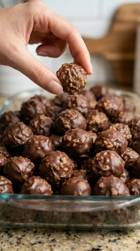 Once dipped in chocolate, each ball develops a smooth outer shell that contrasts beautifully with the crunchy interior. The result is a dessert that feels both indulgent and satisfying.