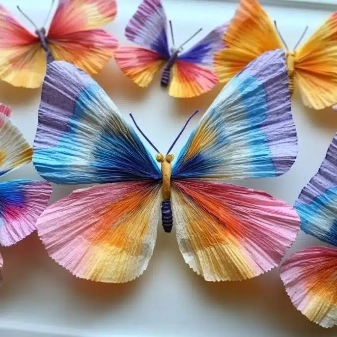 Imagine watercolor wings, swirling with vibrant hues, folded gently into butterfly shapes and topped with twirled antennae. The look is whimsical, soft, and totally enchanting. Whether you stick googly eyes on for some personality or keep them simple, these butterflies are anything but boring!!