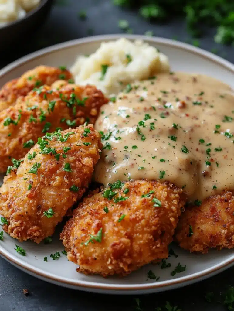 There’s just something about the crunch of country-fried chicken paired with rich, creamy sausage gravy that speaks to the heart and comforts the soul. This dish is a true Southern classic, a masterpiece of flavor and texture that never fails to impress. Imagine golden, crispy chicken smothered in savory sausage gravy—it’s down-home cooking at its finest! Let’s dive into this mouthwatering recipe, one that will soon become a family favorite at your table.