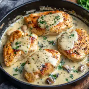 Sauté seasonal vegetables such as broccoli or bell peppers in the skillet after cooking the chicken, then pour the creamy sauce over them. This adds nutrition and color to the dish.