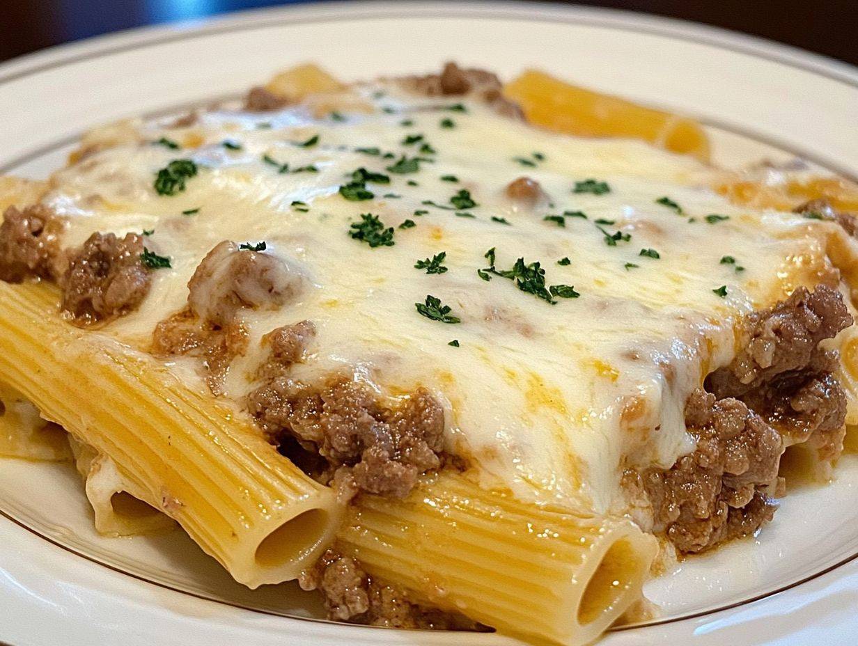 Creamy Cheesy Garlic Butter Rigatoni with Savory Beef