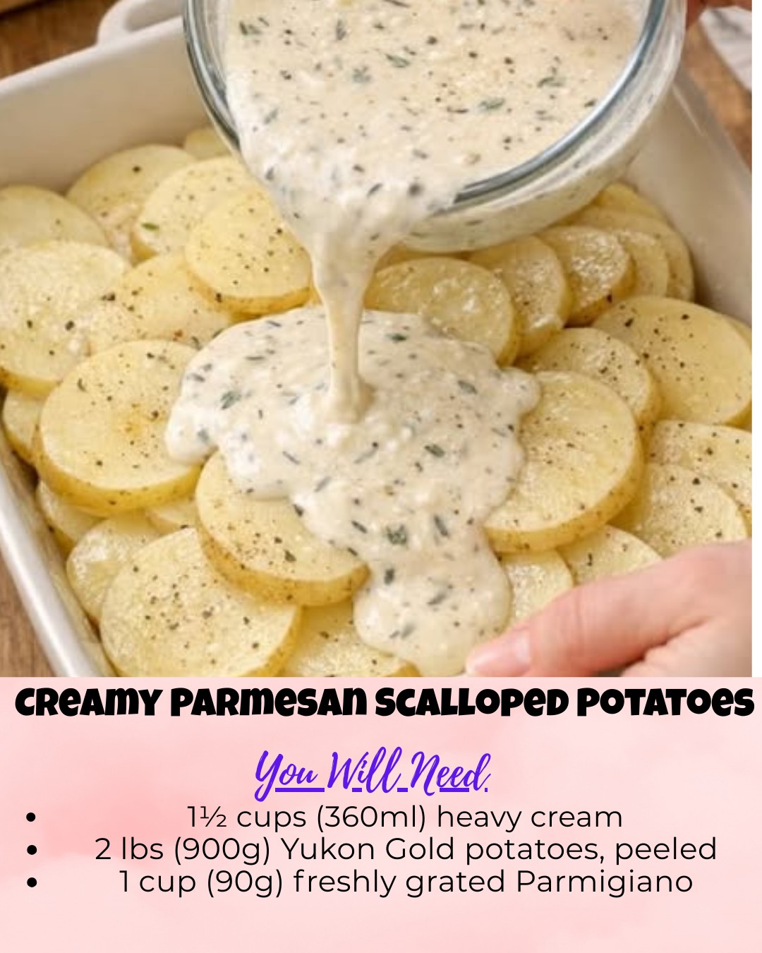 Because the potatoes absorb seasoning as they bake, the cream mixture should taste slightly salty before pouring it over. This ensures balanced flavor throughout every layer.
