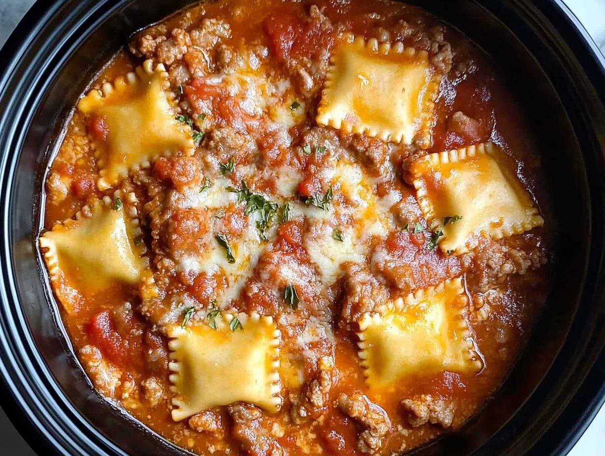 - Slow cook on LOW for 4-6 hours or HIGH for 2-3 hours until the ravioli is soft and tender, and the cheese is melted and bubbly.