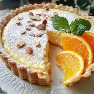 This Decadent Almond Orange Ricotta Tart is the perfect balance of indulgence and freshness, with a smooth ricotta filling complemented by bright citrus and nutty almond flavor. Whether you’re hosting a special gathering or treating yourself, this tart will undoubtedly steal the spotlight. Serve it with a garnish of fresh oranges, mint, and almonds, and enjoy a dessert that’s as beautiful as it is delicious.
