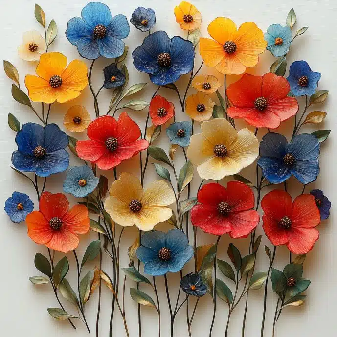 Once dry, your textured flower masterpiece is ready for the spotlight. Tape it on a wall, frame it, or string up a gallery line for instant cheer.