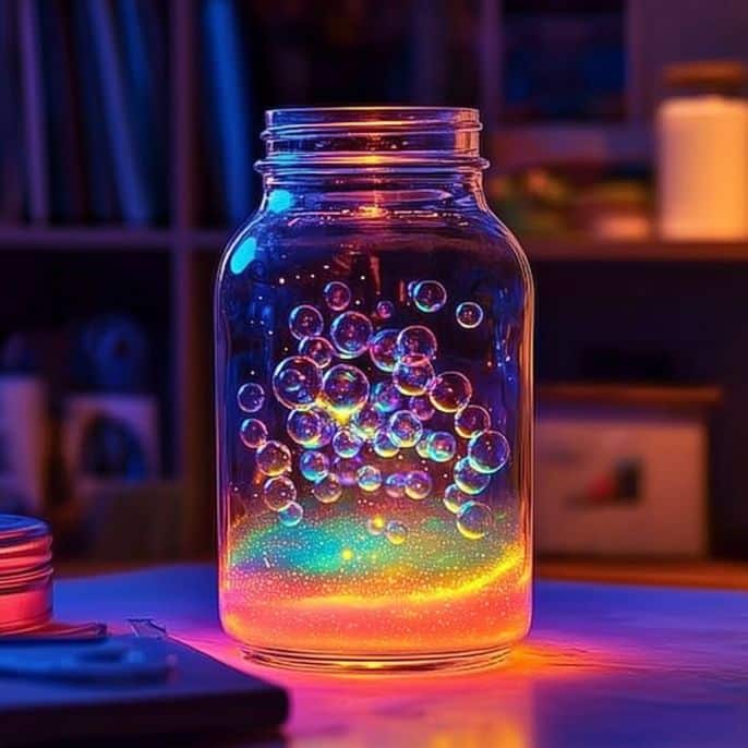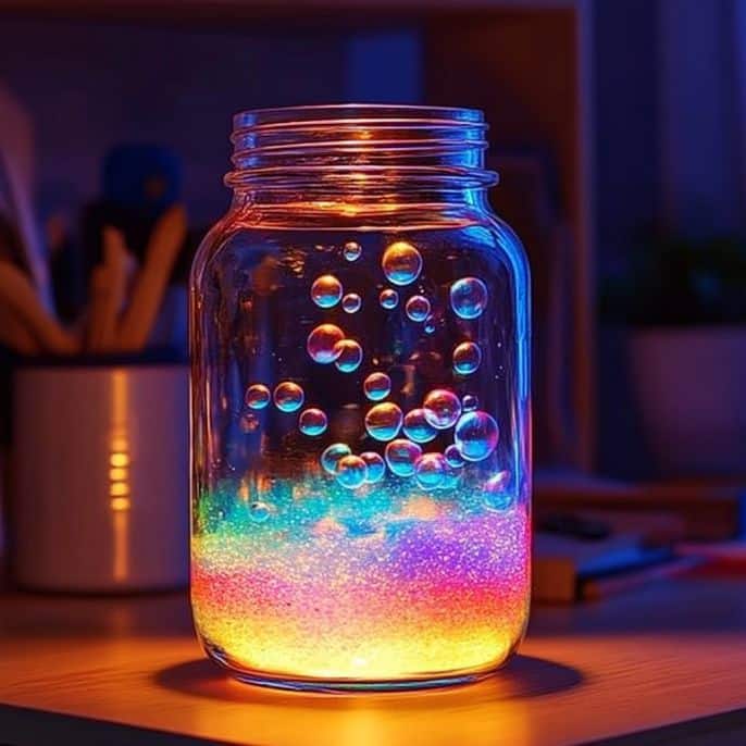 Imagine a lava lamp met a glow stick and they had a bubbly, totally enchanting baby. That’s basically what this is. A glowing bubble lamp is a super simple science-meets-art project that uses basic household ingredients to create a mesmerizing, light-filled display.
