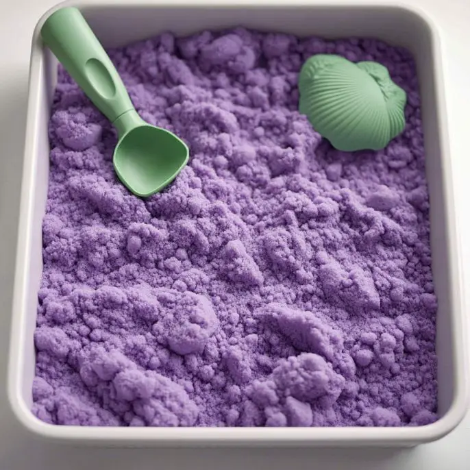 - Once desired texture and color are reached, moon sand is ready to play with. Store in an airtight container.
