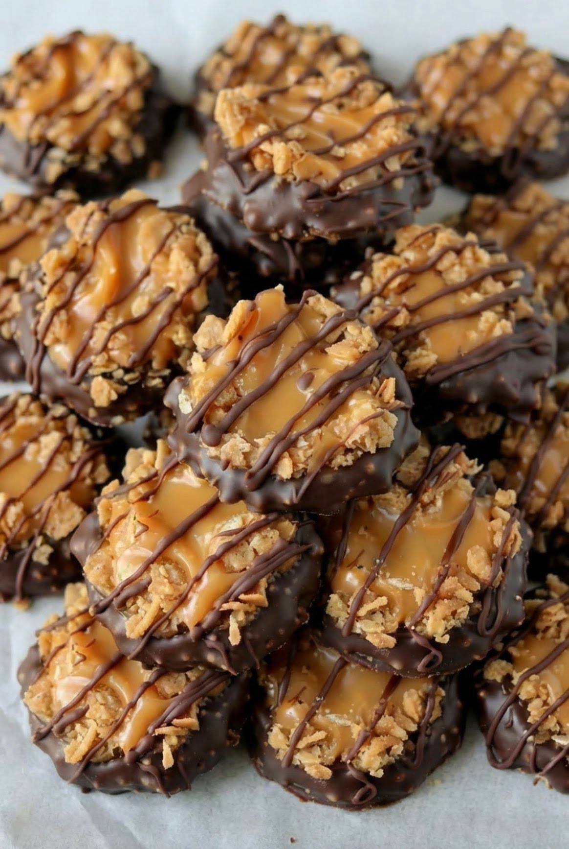 I first made these on a day when I wanted something sweet but didn’t feel like turning on the oven. I mixed everything together, drizzled the chocolate, and let them set. When I took the first bite, the caramel and coconut combination instantly reminded me of those iconic cookies. Since then, this recipe has become my go-to whenever I want something easy but impressive.