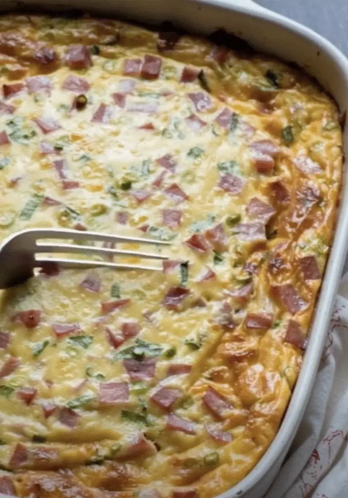 This breakfast bake layers hash browns, ham, cheese, and green onions under a rich, custardy egg mixture that bakes into a golden, savory, fork-tender casserole. It’s perfect for holidays, weekends, potlucks, or any morning you want a filling, hands-off meal that feeds a crowd with barely any prep.