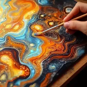 - Play with consistency – thicker paints fizz more dramatically, thinner ones spread like watercolor.
