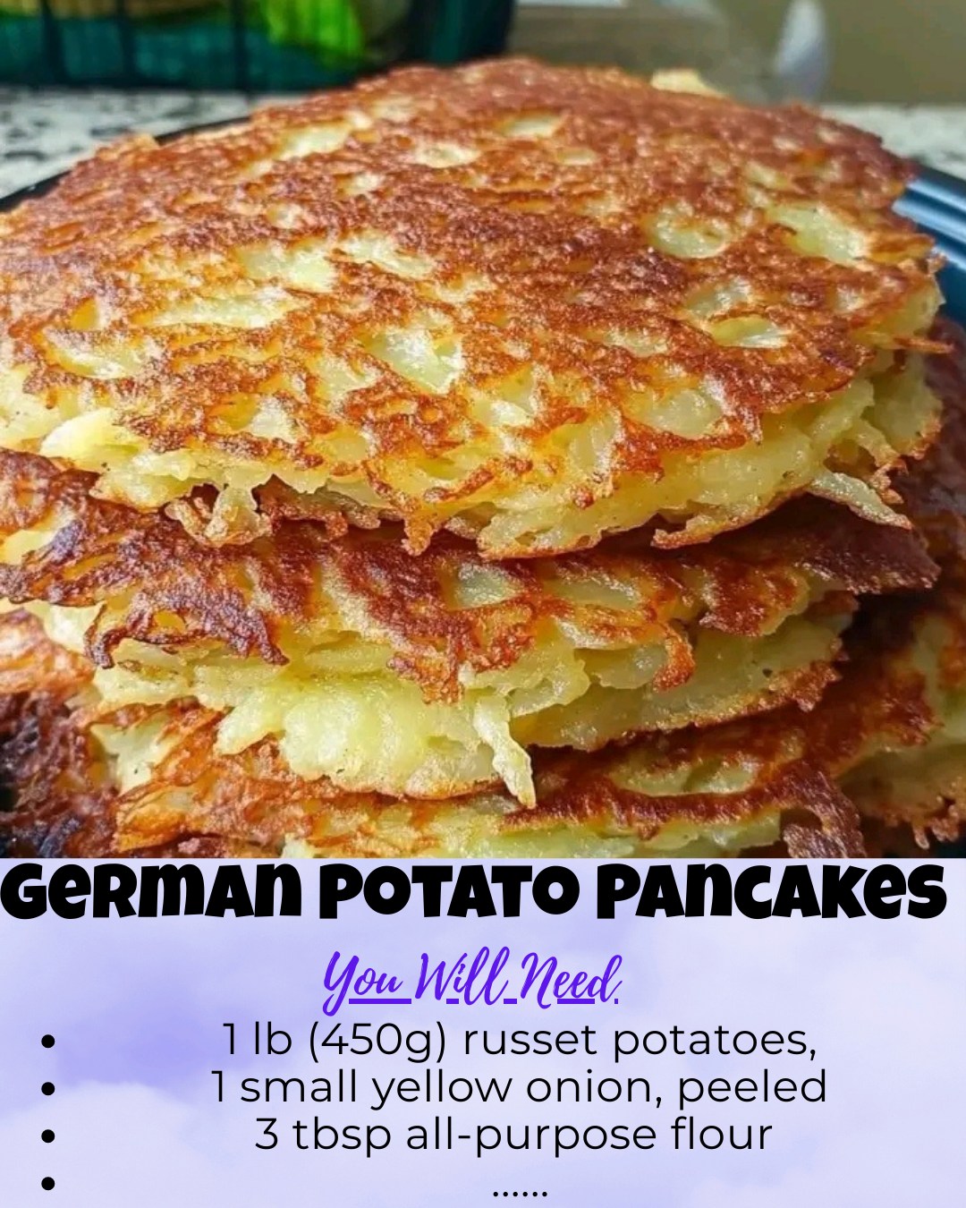 One home cook once shared that her kids called them “potato chips that taste like home,” and that description captures the feeling perfectly. I remember making German Potato Pancakes (Kartoffelpuffer) on a cold Sunday afternoon when the kitchen windows fogged from the sizzling oil. The smell alone drew everyone in. We gathered around the stove, stealing bites straight from the cooling rack. The pancakes disappeared faster than I could fry them. That simple moment—standing shoulder to shoulder, laughing, and sharing crispy edges—turned a basic potato recipe into a family tradition we still repeat every year.
