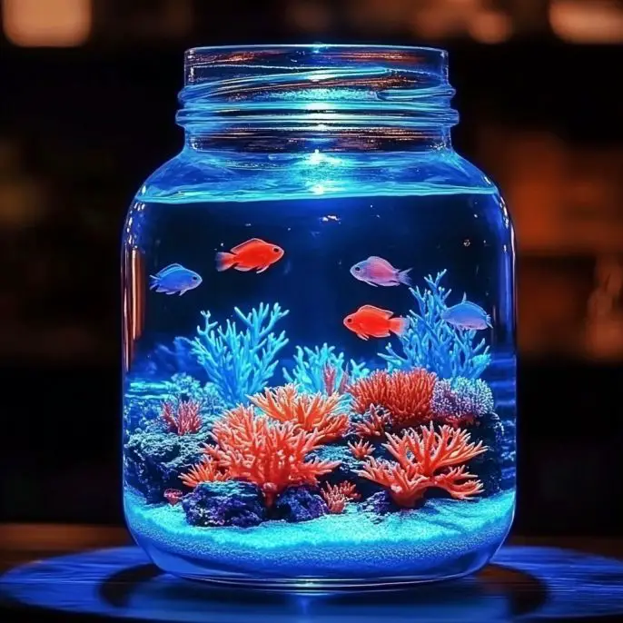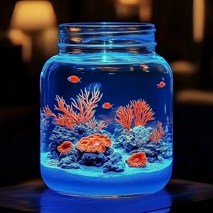 🐚 Use glow-in-the-dark paint splatters inside the jar for a coral reef look