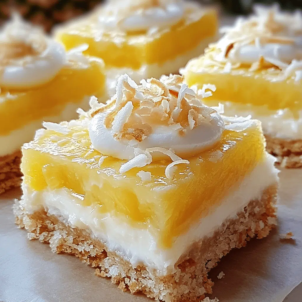 - Garnish and Serve: Sprinkle the toasted coconut flakes over the frosting and, if desired, add fresh pineapple slices. Cut the bars into squares and serve!