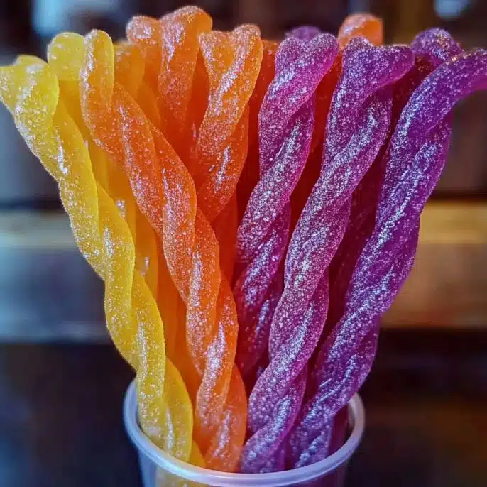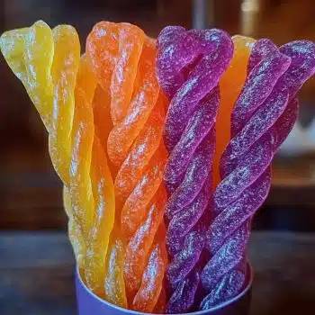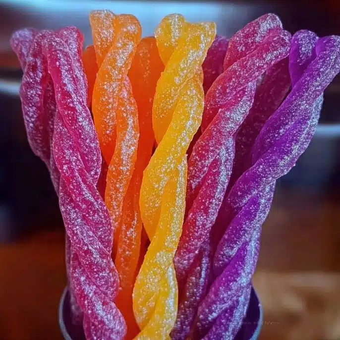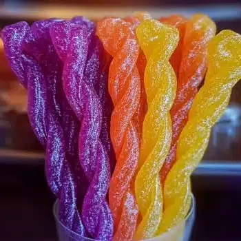 They’re homemade, chewy candy ropes flavored with classic Kool-Aid packets! A cross between licorice and fruit leather, these ropes are tangy, sweet, and stretchy—perfect for twisting, pulling, and sharing. You’ll use unflavored gelatin and corn syrup to get that signature texture, and the Kool-Aid brings bold color and serious flavor punch. Think: cherry red, electric blue, or grape purple!