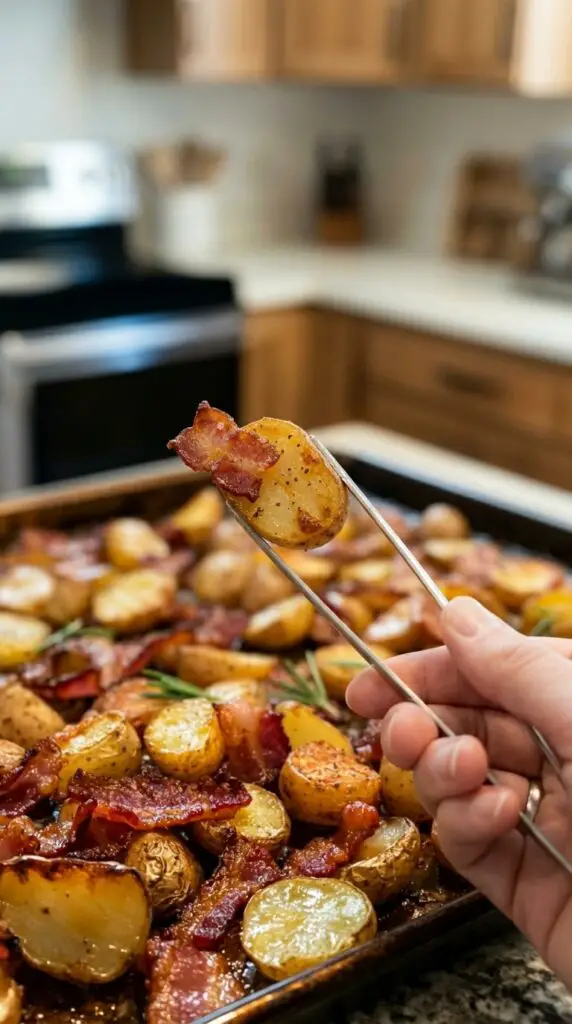 Spacing is another key factor. Spreading everything in a single layer allows hot air to circulate, which encourages browning instead of steaming. When potatoes and bacon overlap too much, the result becomes soft instead of crisp.