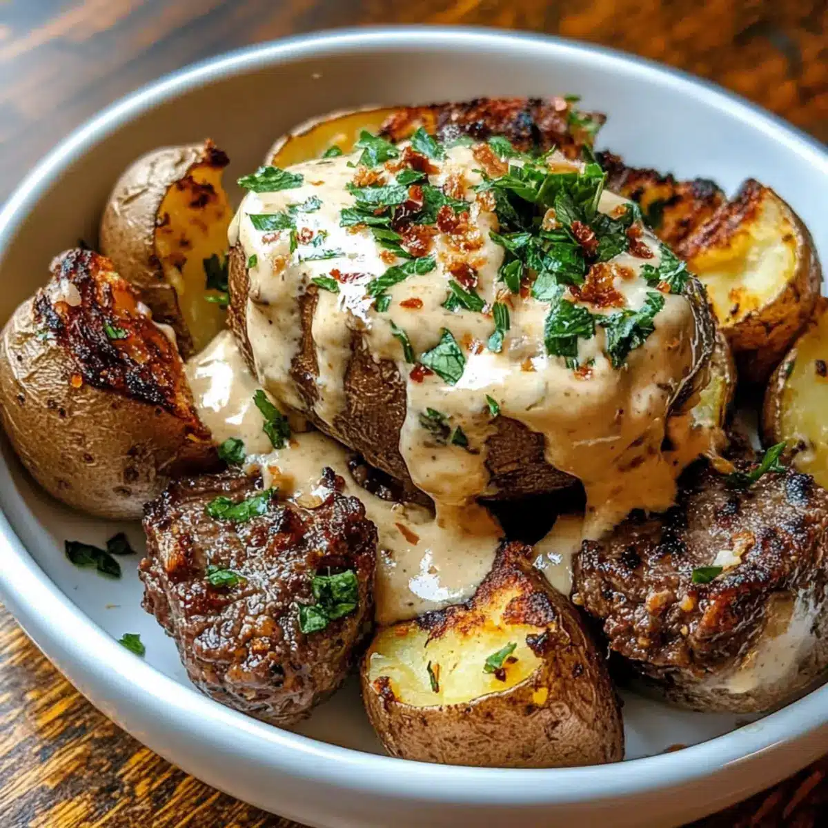 - Seasoning Balance: Always taste the sauce before serving; adjusting the salt and pepper enhances the loaded baked potato steak bites’ overall flavor profile.