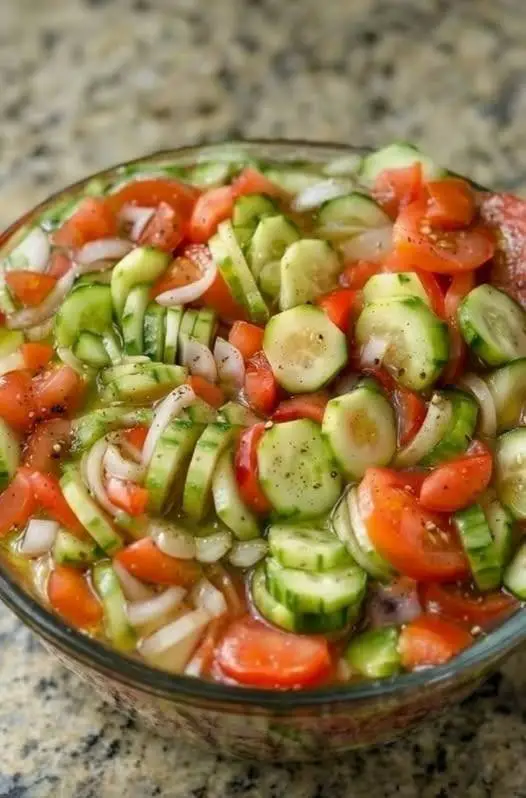 Marinated Cucumbers, Onions, and Tomatoes is a refreshing, tangy side dish that brings crisp textures and bright flavors to any meal. This simple recipe combines fresh vegetables with a lightly sweet and acidic marinade, creating a balance that feels both light and satisfying. Whether you serve it at a summer cookout or alongside a weeknight dinner, this dish delivers a clean, vibrant taste that complements almost anything.