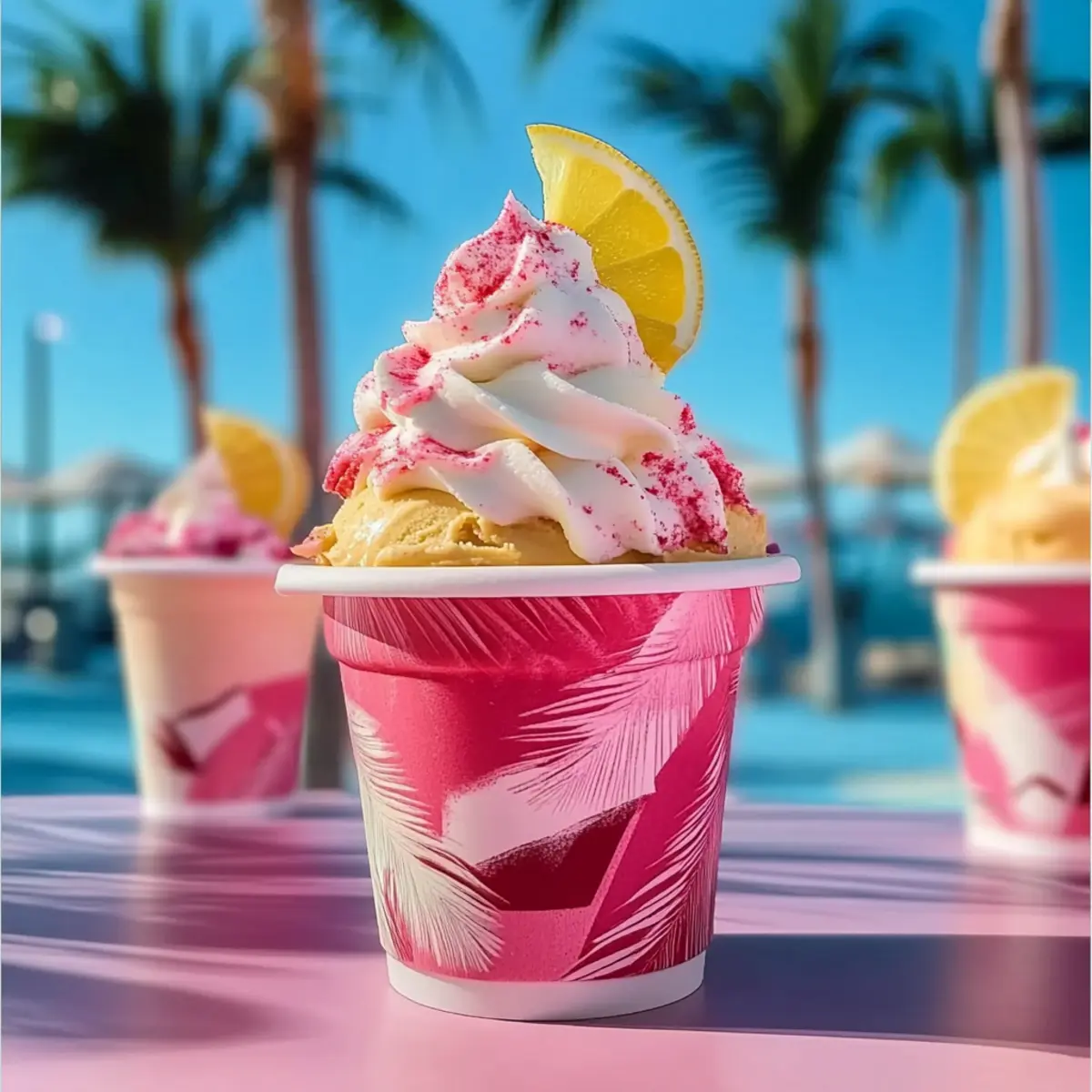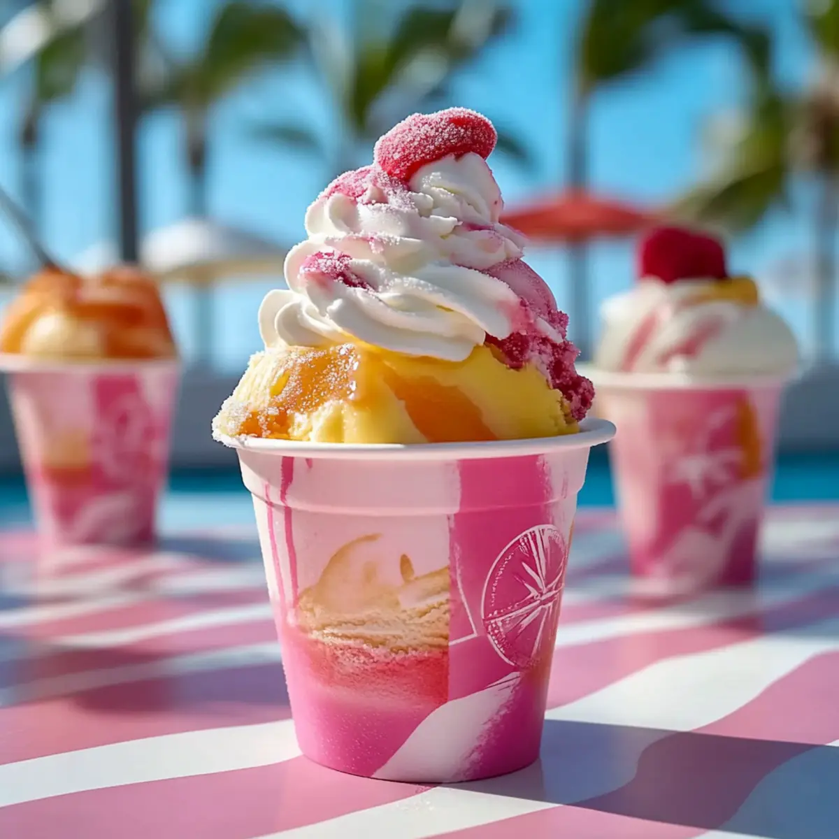 - Serve and Garnish: Scoop the Miami Vice Ice Cream into bowls or cones, garnishing with shredded coconut, fresh pineapple slices, maraschino cherries, and festive paper umbrellas.