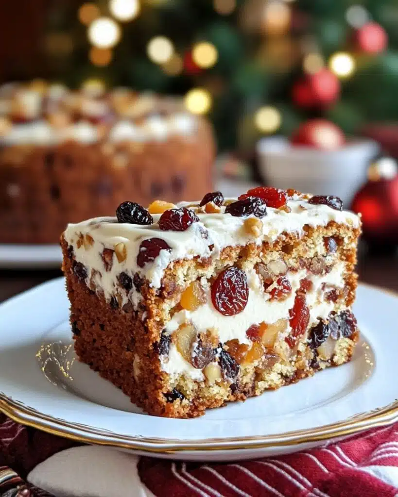 Imagine the warming spices of cinnamon, nutmeg, and cloves mingling with zesty citrus and sweet dried fruits, all held together by a buttery, moist cake. The aroma alone will have your kitchen smelling like a Christmas wonderland!