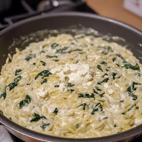 - Large skillet or pan (deep enough to hold the orzo, broth, and spinach).