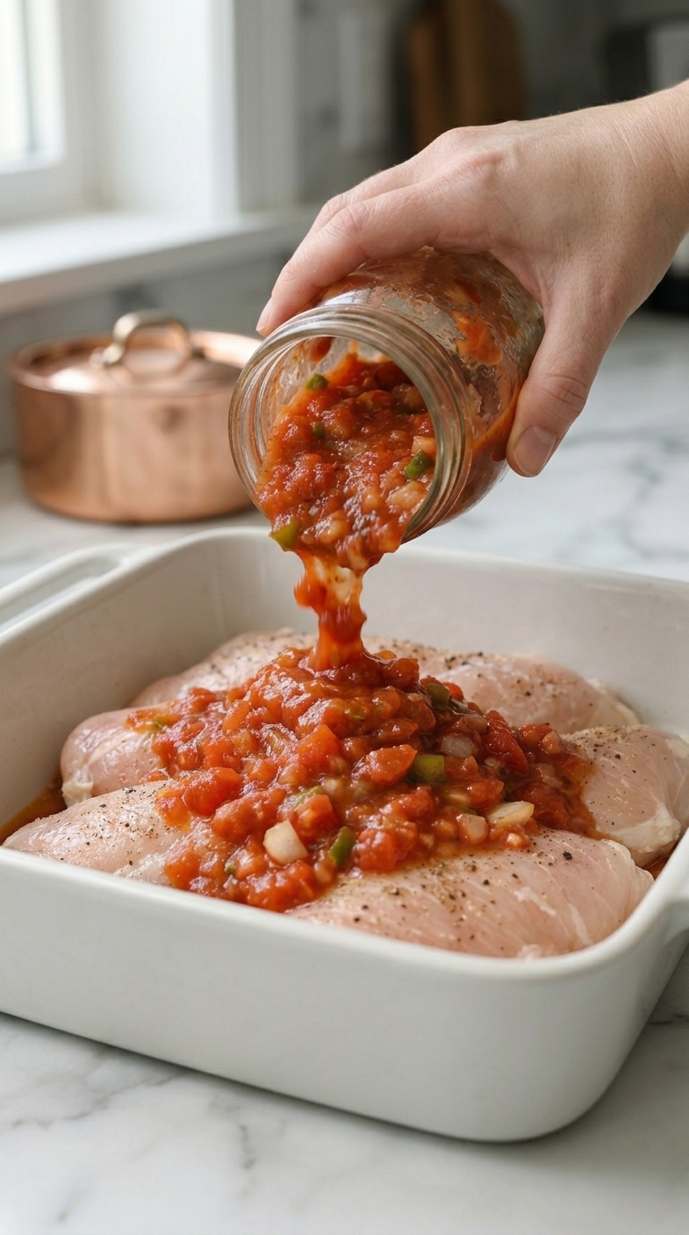 Oven-Baked 4-Ingredient Salsa Chicken – Easy, Juicy Weeknight Dinner