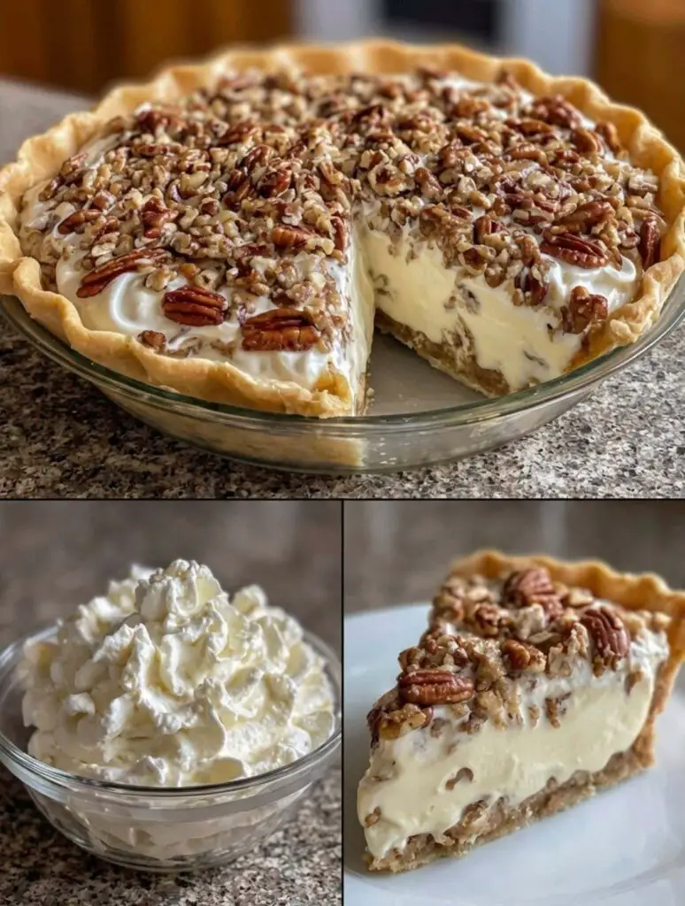 The pecan topping is what gives this pie its signature flavor. Chopped pecans add crunch and a nutty taste that pairs perfectly with the creamy base.