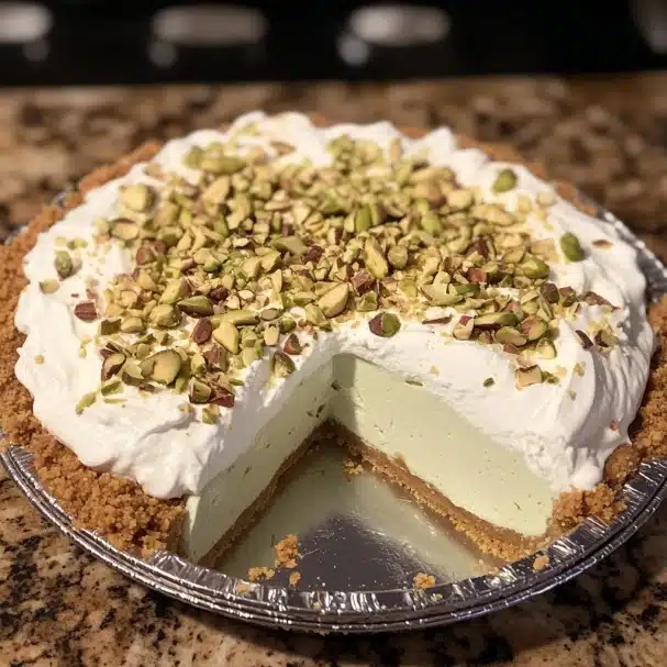 - Before serving, sprinkle extra crushed pistachios on top. Slice it up and watch it disappear—this pie is a crowd-pleaser!