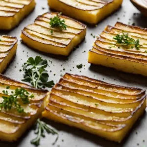 Potato pavé, a dish steeped in culinary elegance, is a testament to the sophistication of French cooking. The term pavé, French for “paving stones,” aptly describes this dish’s characteristic rectangular or square shape. Originating from the creative mind of renowned chef Thomas Keller, potato pavé elevates the humble potato to a work of art. Unlike traditional scalloped potatoes, pavé focuses on meticulous layering, creating a texture that’s both delicate and rich.
