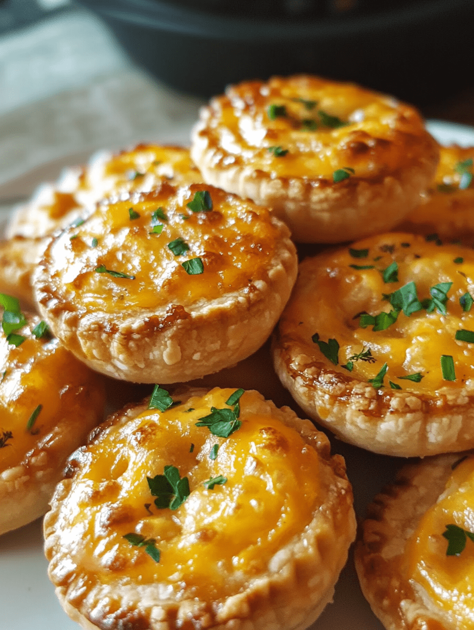 This recipe is a true crowd-pleaser! It’s a delightful fusion of flavors that evoke the essence of fall. The creamy pumpkin combined with sharp cheddar creates a rich filling that’s absolutely scrumptious! Plus, these mini pies are easy to prepare, making them a fun activity for the whole family. Imagine the warm, buttery aroma wafting through your kitchen as you bake them—pure comfort food!