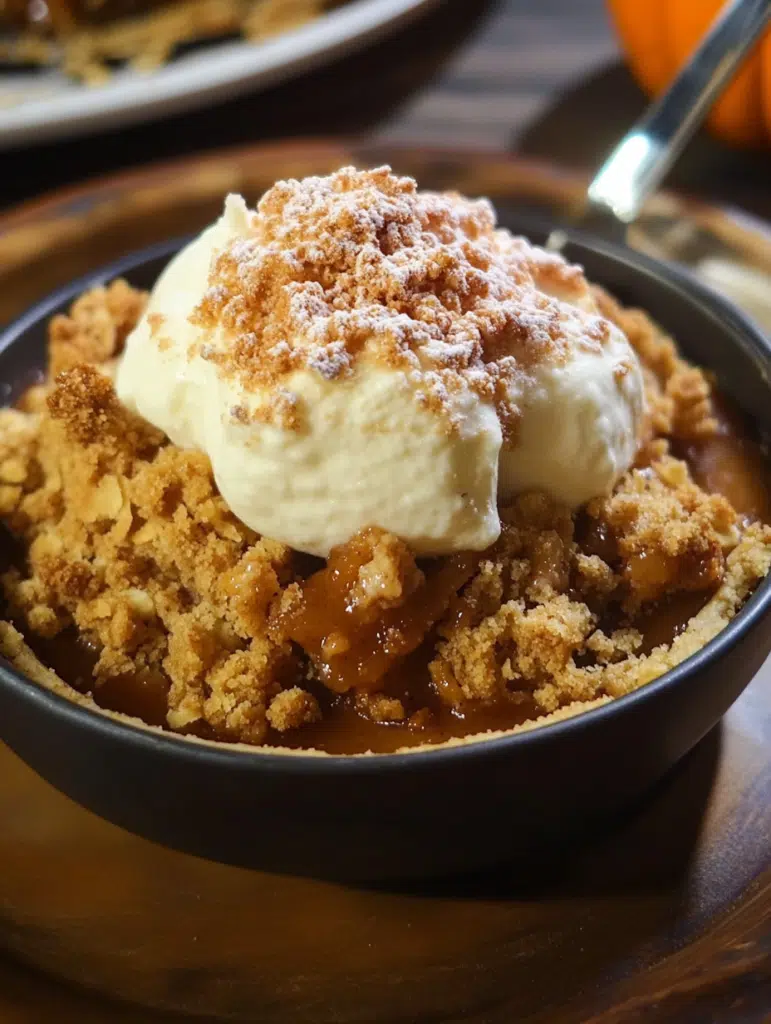 For the ultimate dessert experience, serve your Pumpkin Pie Crisp warm with a scoop of vanilla ice cream or a generous dollop of whipped cream. Pair it with a cup of spiced chai tea or a pumpkin spice latte for the ultimate autumn treat. 🍨☕️