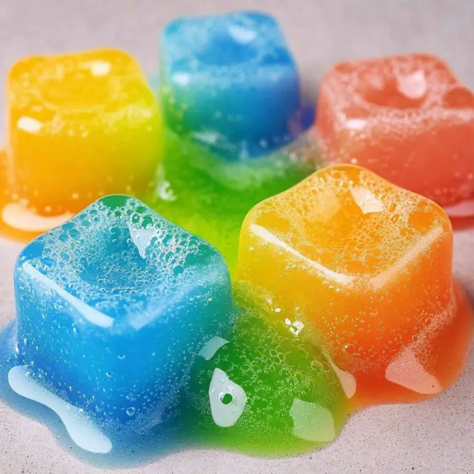 - Spray or pour vinegar over the cubes. Watch the vibrant fizzing reaction as the colors bubble and mix!