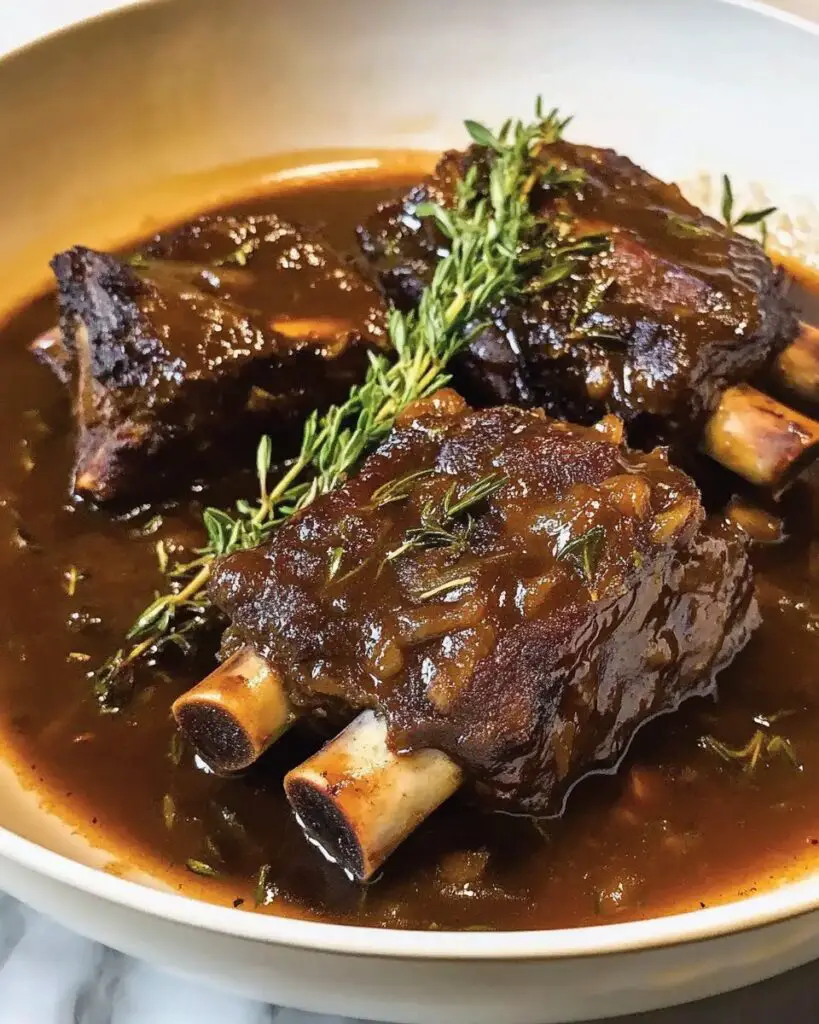Rustic Red Wine–Braised Beef Short Ribs in Velvety Herb-Infused Gravy is a dish that brings together rich flavor, tender meat, and comforting warmth in every bite. With its slow-cooked depth and luxurious sauce, it turns simple ingredients into an unforgettable meal. Whether for a special occasion or a cozy dinner, this recipe is sure to impress and satisfy.