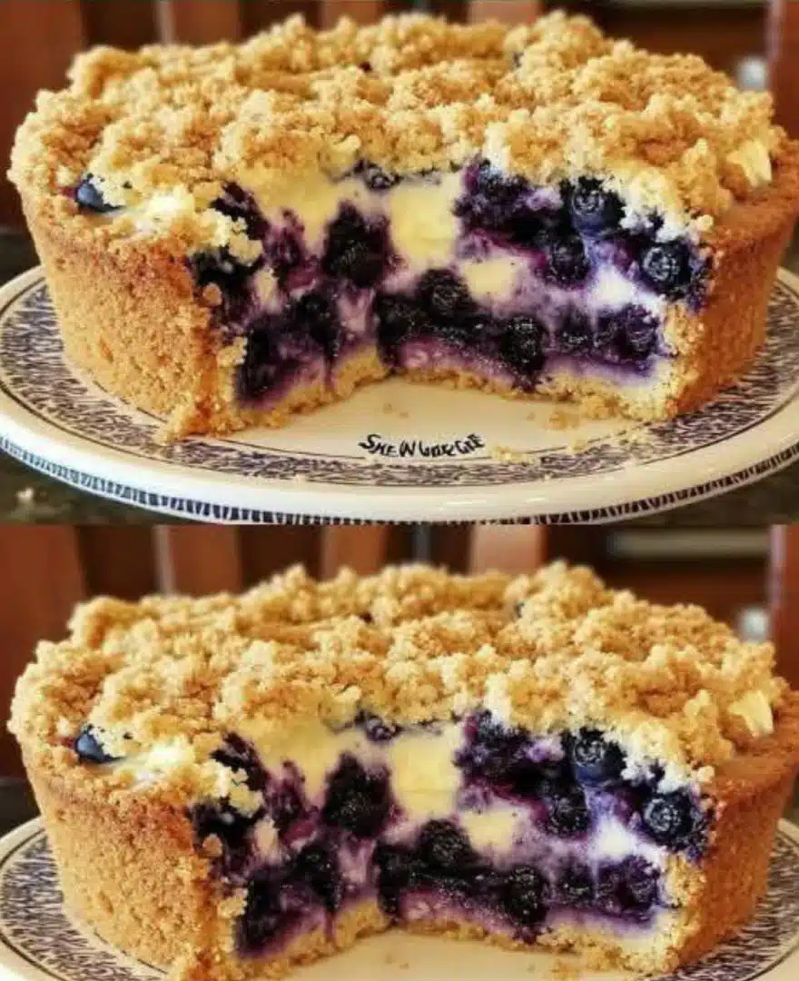 Each forkful gives you tender cake, pockets of creamy cheesecake filling, and bursts of juicy blueberries all under a sweet cinnamon-scented crumb.