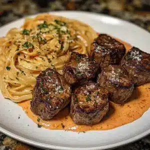 Few meals strike the perfect balance between indulgent comfort and elegant flavor like this Sizzling Garlic Butter Steak Bites & Creamy Roasted Red Pepper Alfredo. It’s rich, flavorful, and feels like a restaurant-quality dish—but comes together in your very own kitchen with surprising ease. Imagine juicy steak, seared to perfection, paired with a velvety roasted red pepper Alfredo sauce that’s both creamy and aromatic. This dish is perfect for a special date night, celebratory dinners, or whenever you feel like treating yourself to something extraordinary without spending hours in the kitchen.
