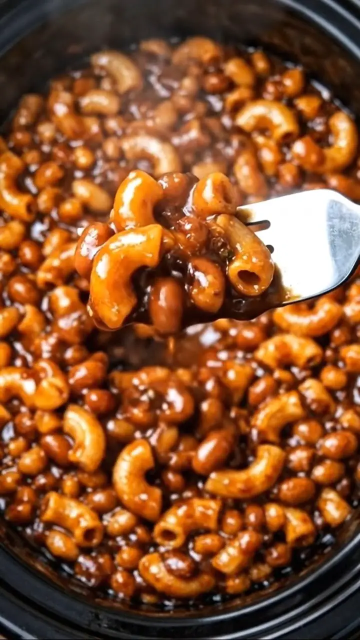 The slow cooker allows the flavors to deepen as the pasta absorbs the baked bean sauce. The heat softens the beans further while the macaroni releases starch, naturally thickening the mixture. Over time, everything blends into a cohesive, rich dish with a sweet and savory profile.